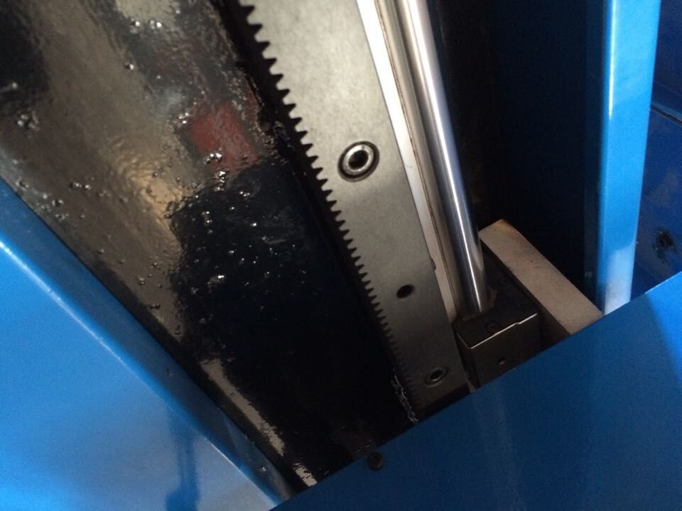 機器縱向采用高精度齒條與日本進口松下伺服電機結合使用,所使用的齒輪、齒條全部經過全自動新型淬火設備加以淬火處理,精密的加工工藝,使其精度達到了GB/T100967-9級標準。同時用臺灣雙滾軸直線導軌保證縱向行走更加精準。縱向導軌經過精磨處理,表面平整度極佳,經久耐用。設備整機在12000mm/min高速下連續工作切割,機器移動精度高,機身穩定無抖動。
